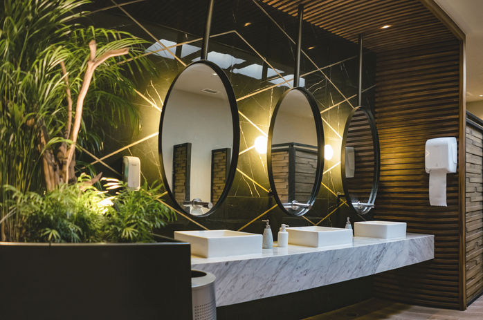 The restaurant is developed in three volumes that frame a large terrace overlooking the garden, with windows that bathe the restaurant with light.