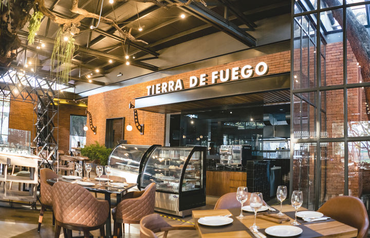 The mixture of industrial style with rustic touches, generate an interesting spatial sensation, because within such a spacious dining room, the correct proportion of the human scale is achieved.